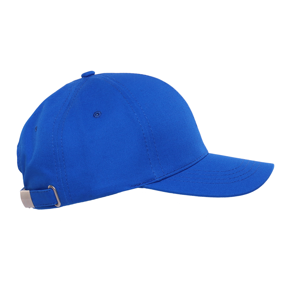 Бейсболка-шестиклинка с классическим изогнутым козырьком и застежкой на ленту с металлическим замком в тон основному цвету изделия.