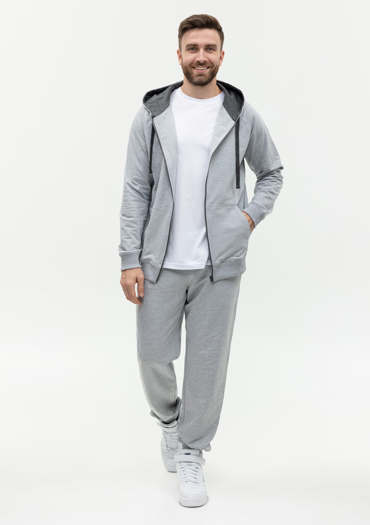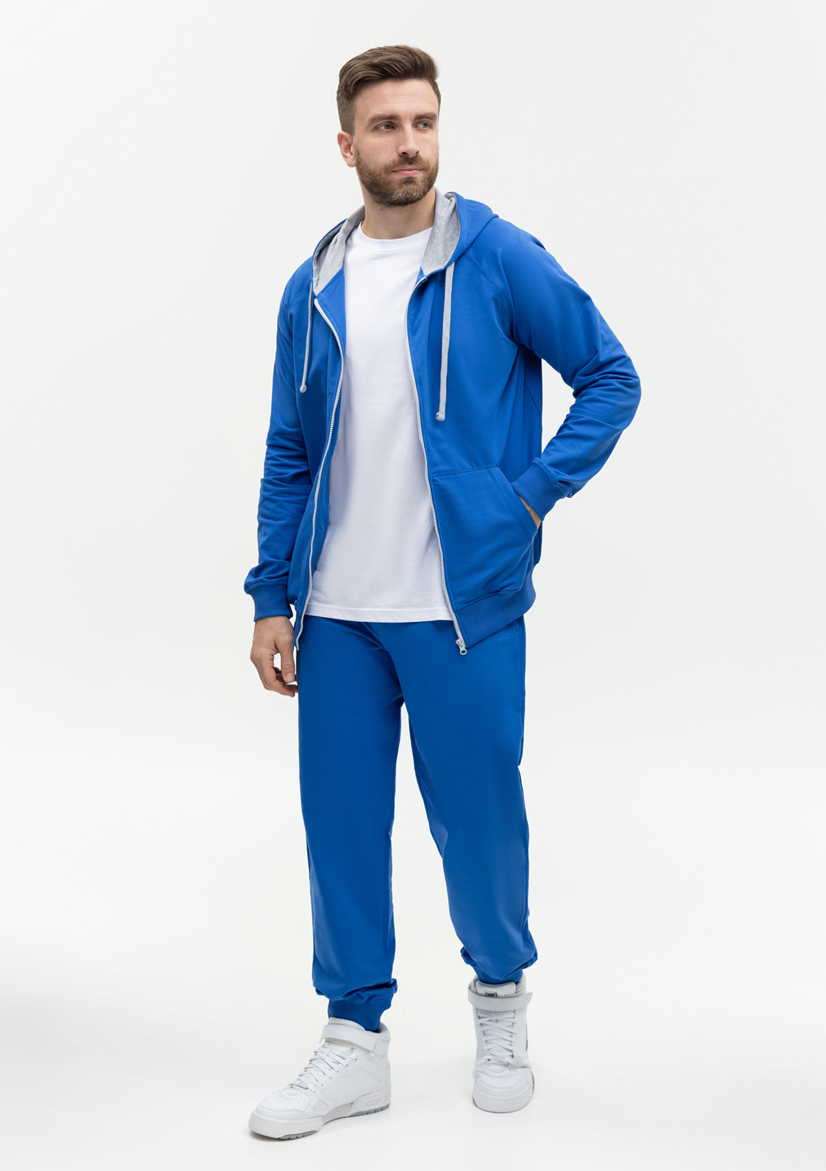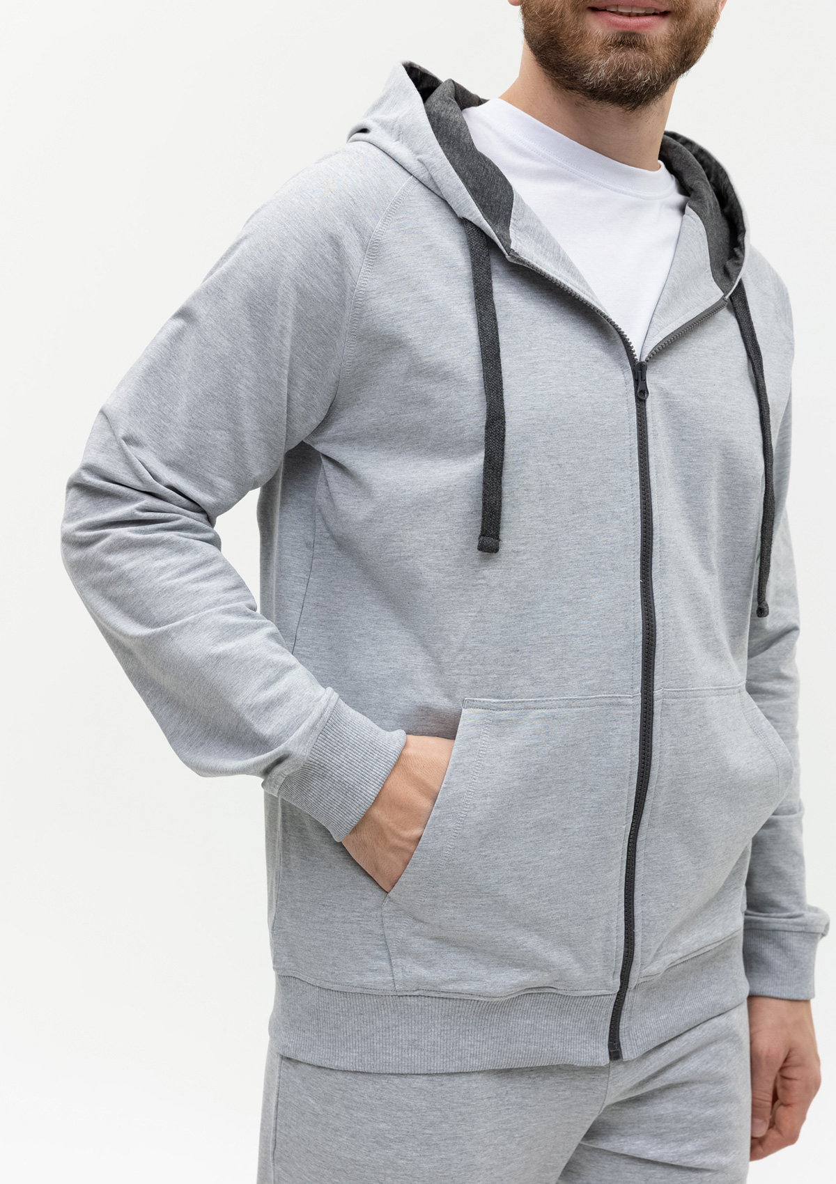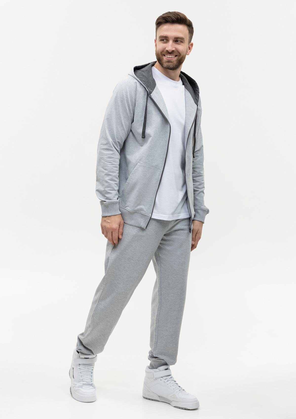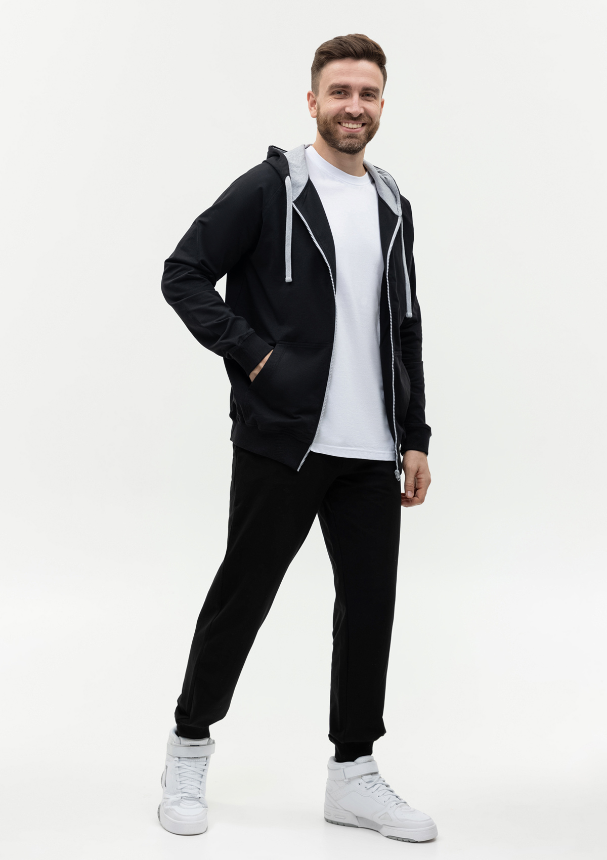 Модель без начеса выполнена из согревающего и приятного материала – футера. Благодаря добавлению эластана материал обладает эффектом «stretch», что делает ткань эластичной и устойчивой к выцветанию. Полотно отличается износостойкостью: не скатывается и не теряет форму даже после многочисленных стирок.