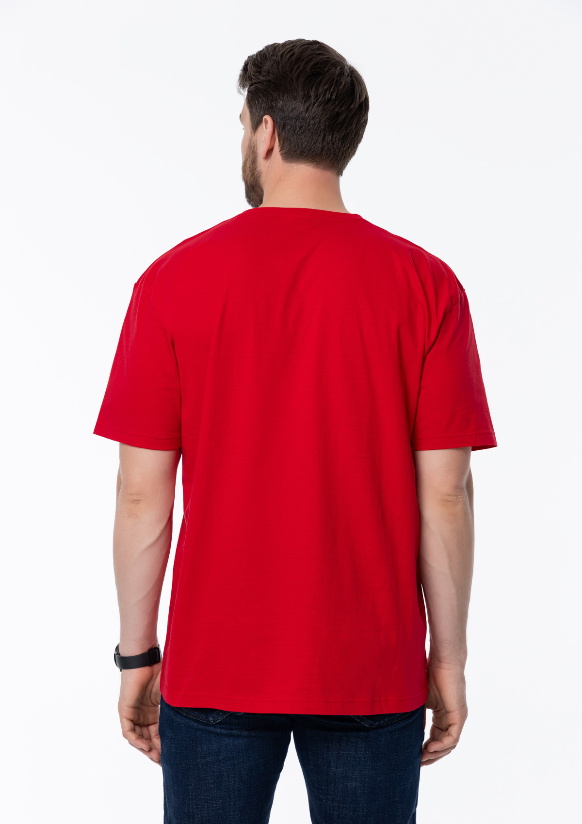 Размер мужской футболки: XXL/54. Параметры модели: рост 190 см.; обхват груди 108 см.; обхват талии 87 см.; обхват бедер 104 см.