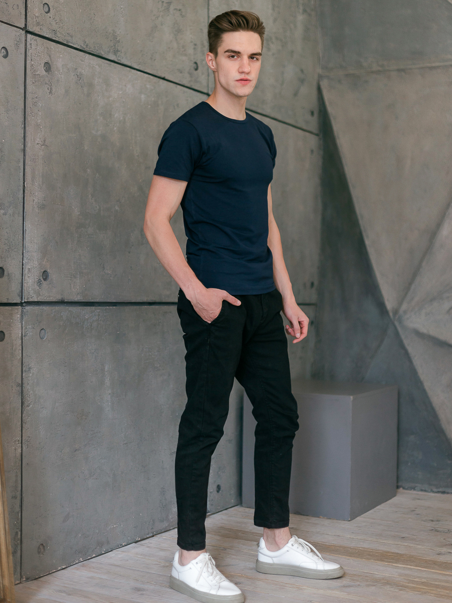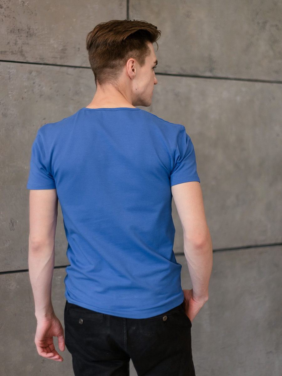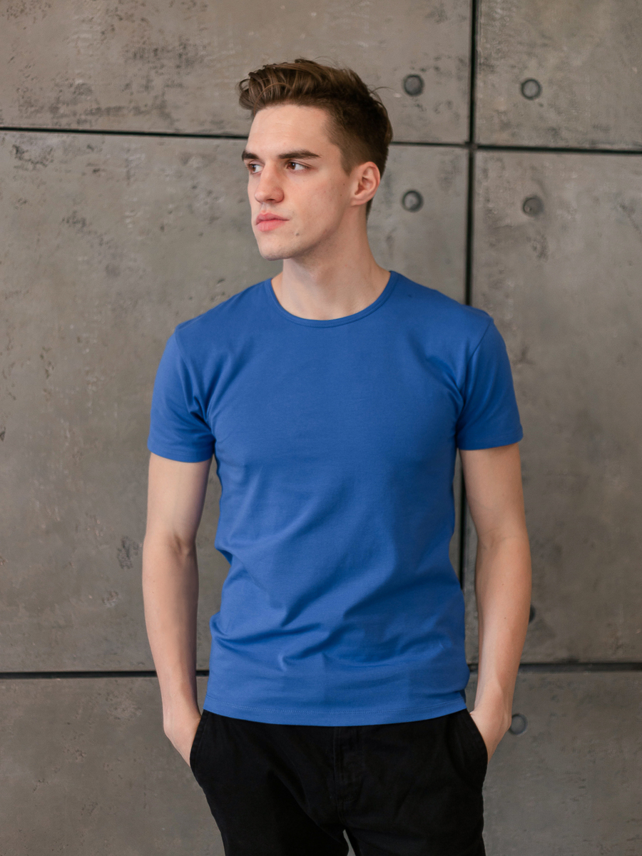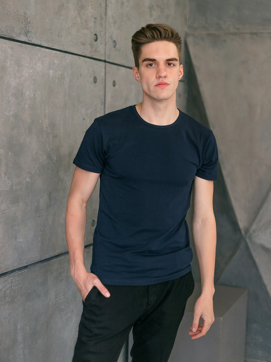 Мужская футболка облегающего силуэта с округлым вырезом и втачным рукавом.