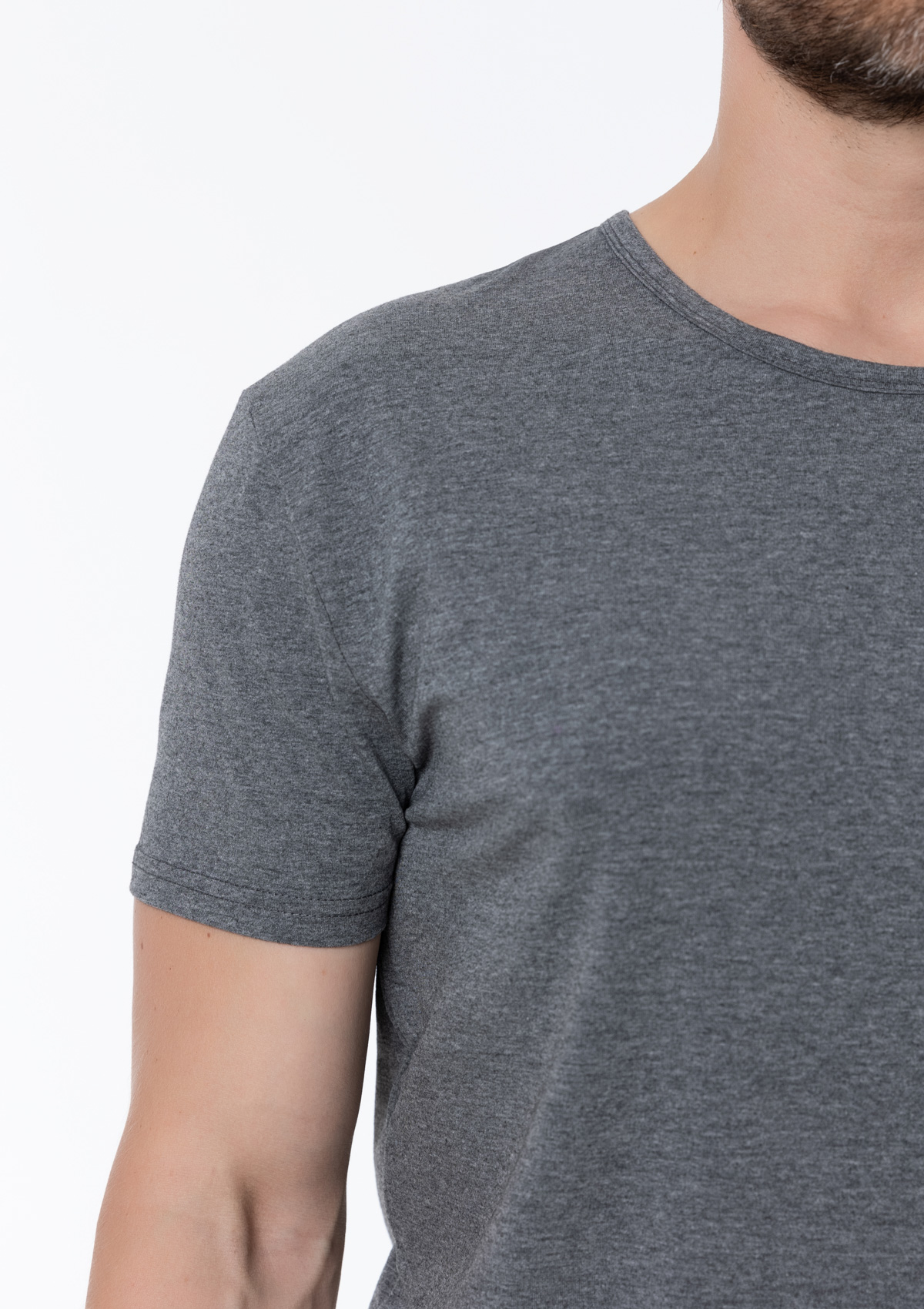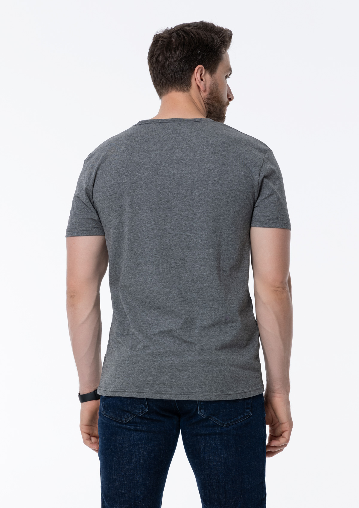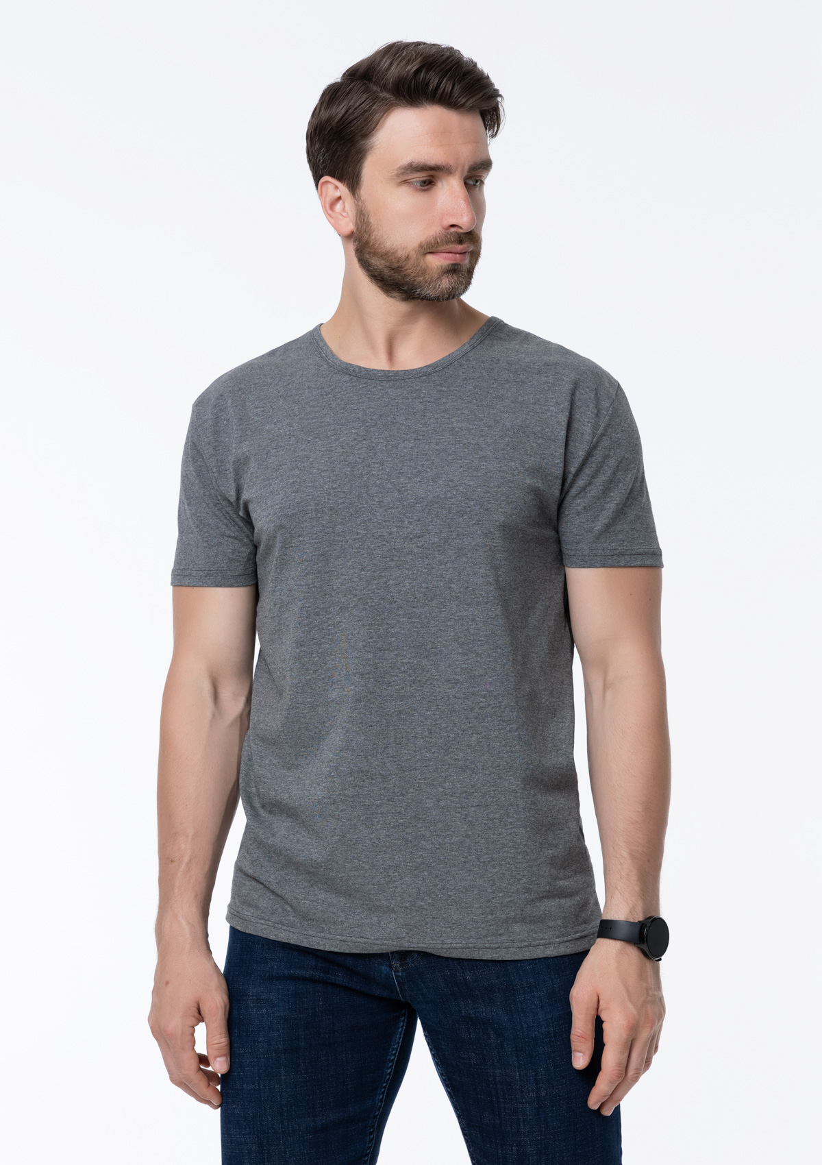 Мужская футболка облегающего силуэта с округлым вырезом и втачным рукавом.