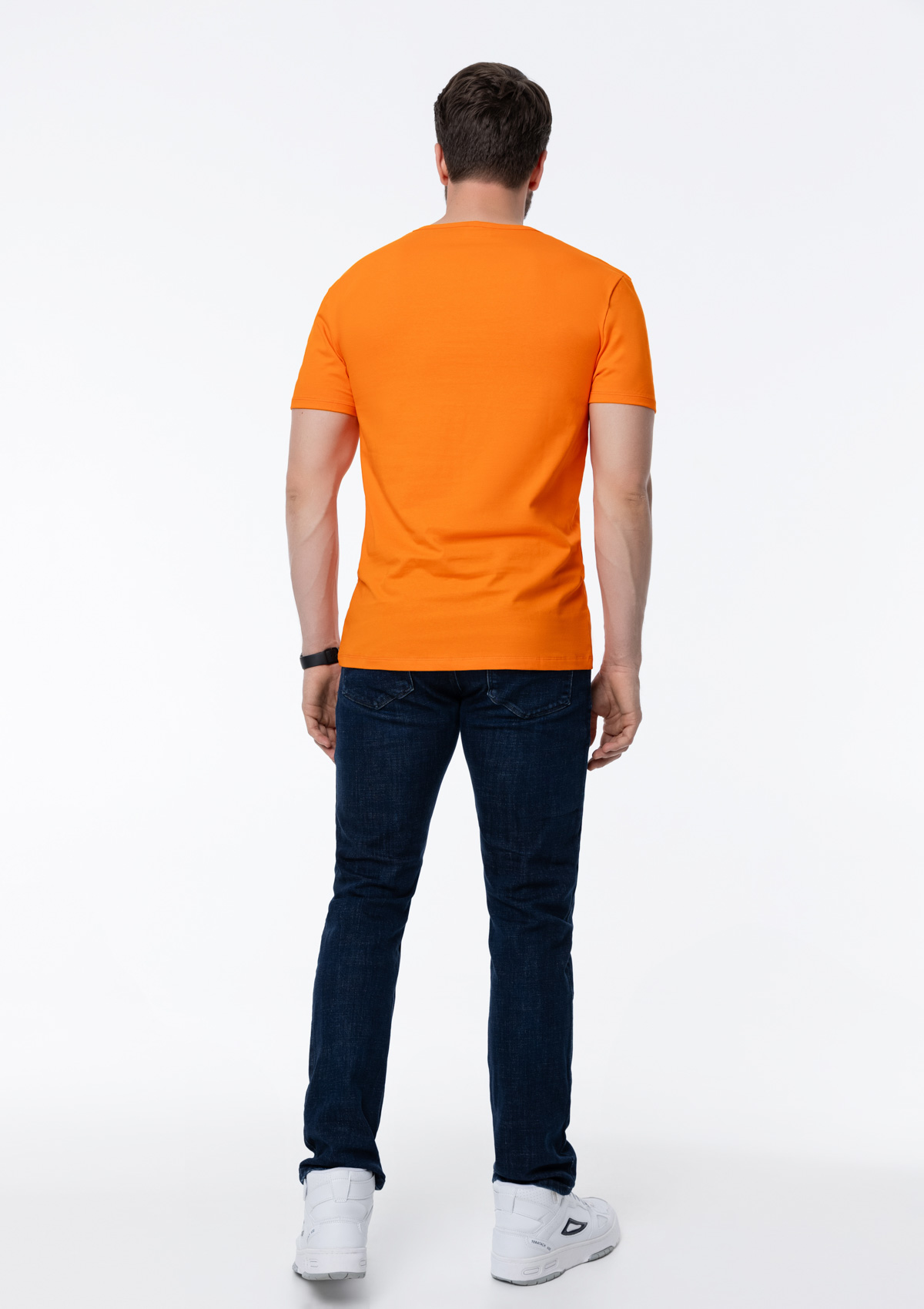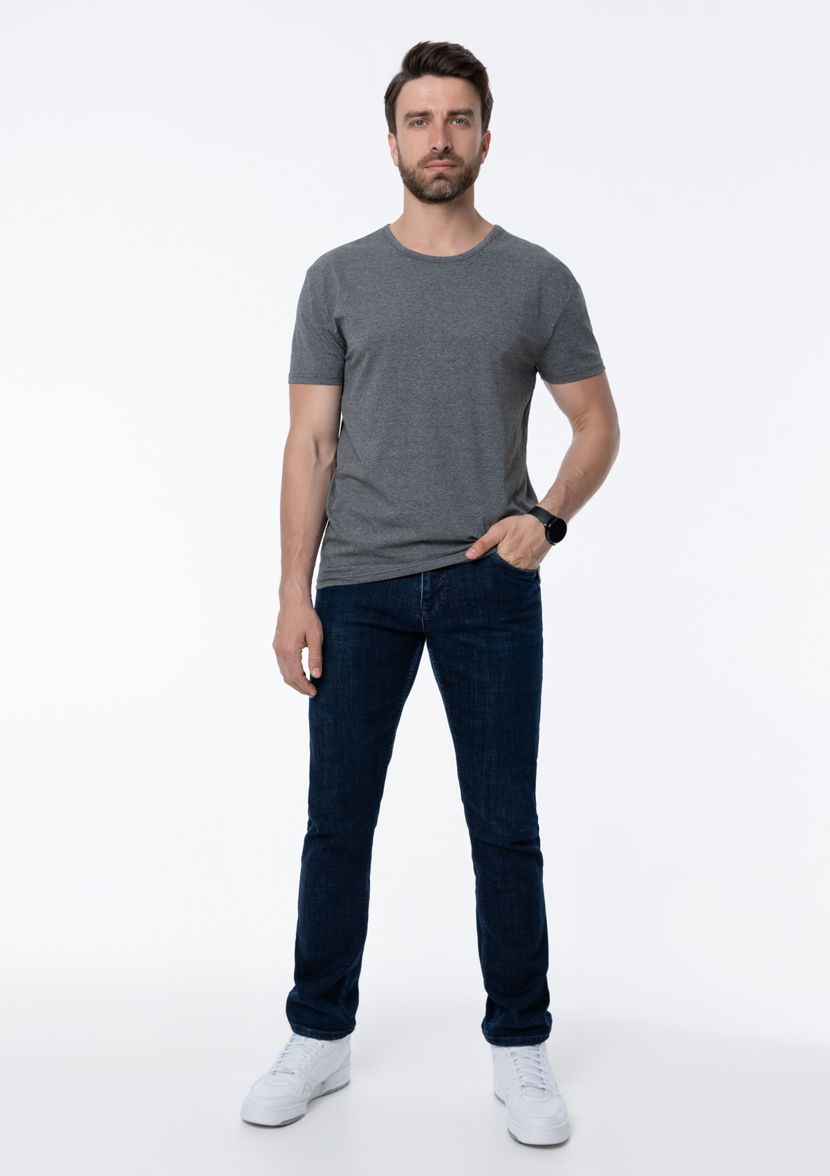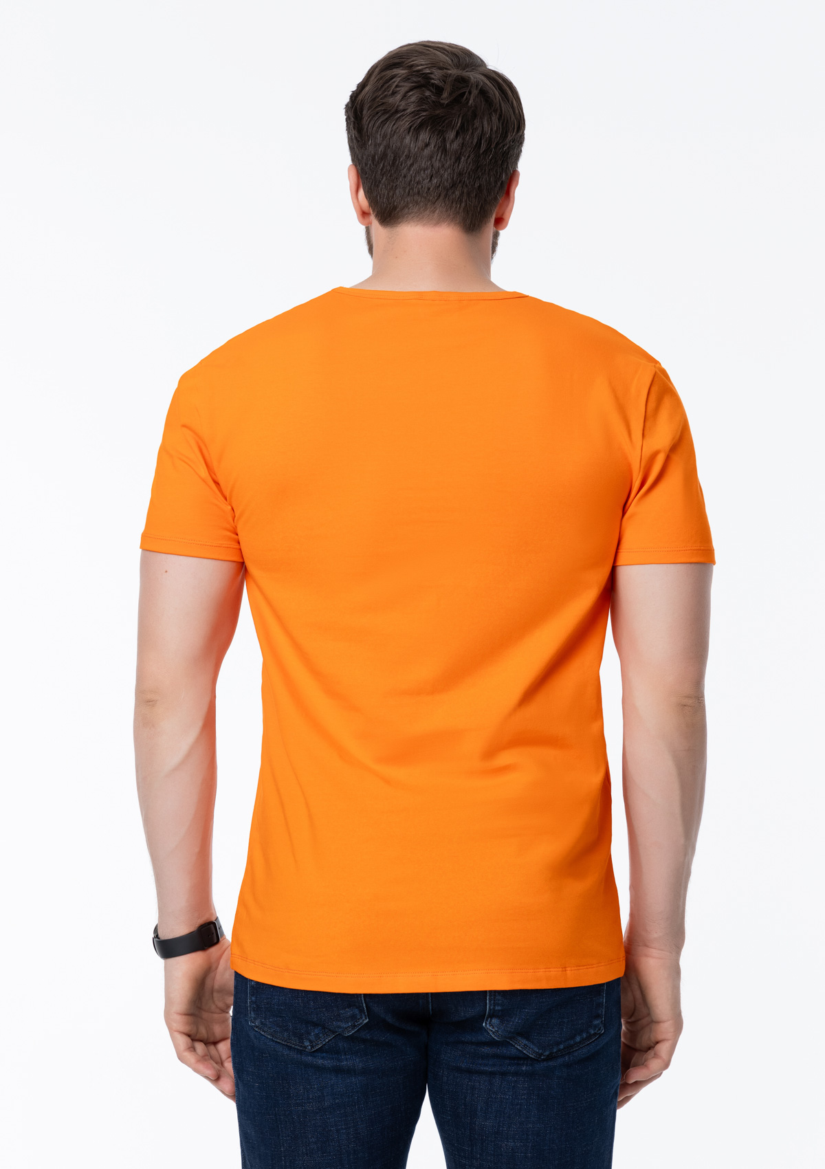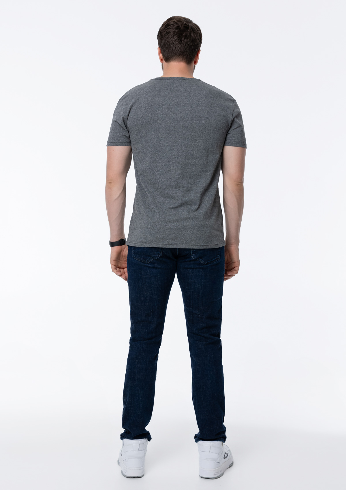 Мужская футболка облегающего силуэта с округлым вырезом и втачным рукавом.