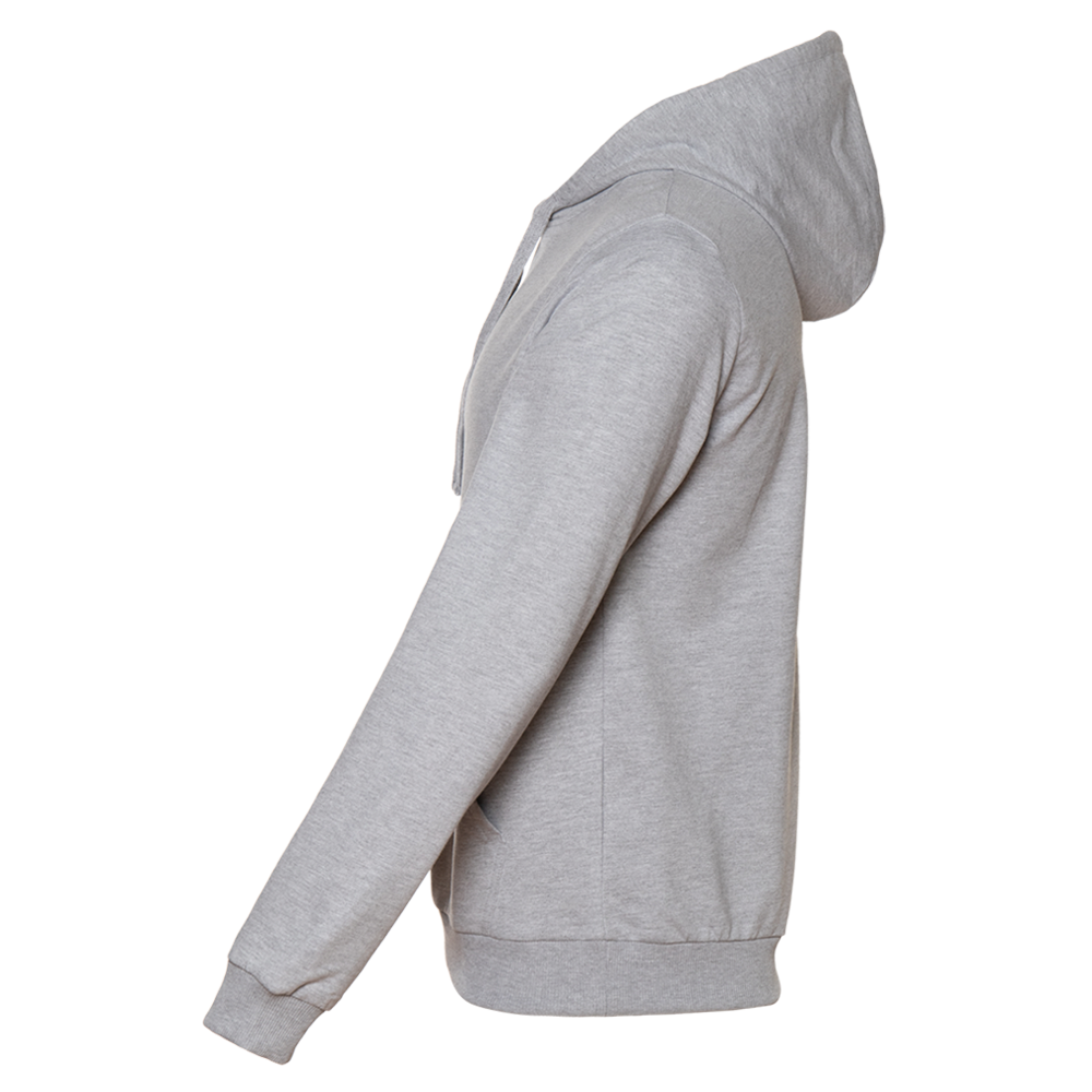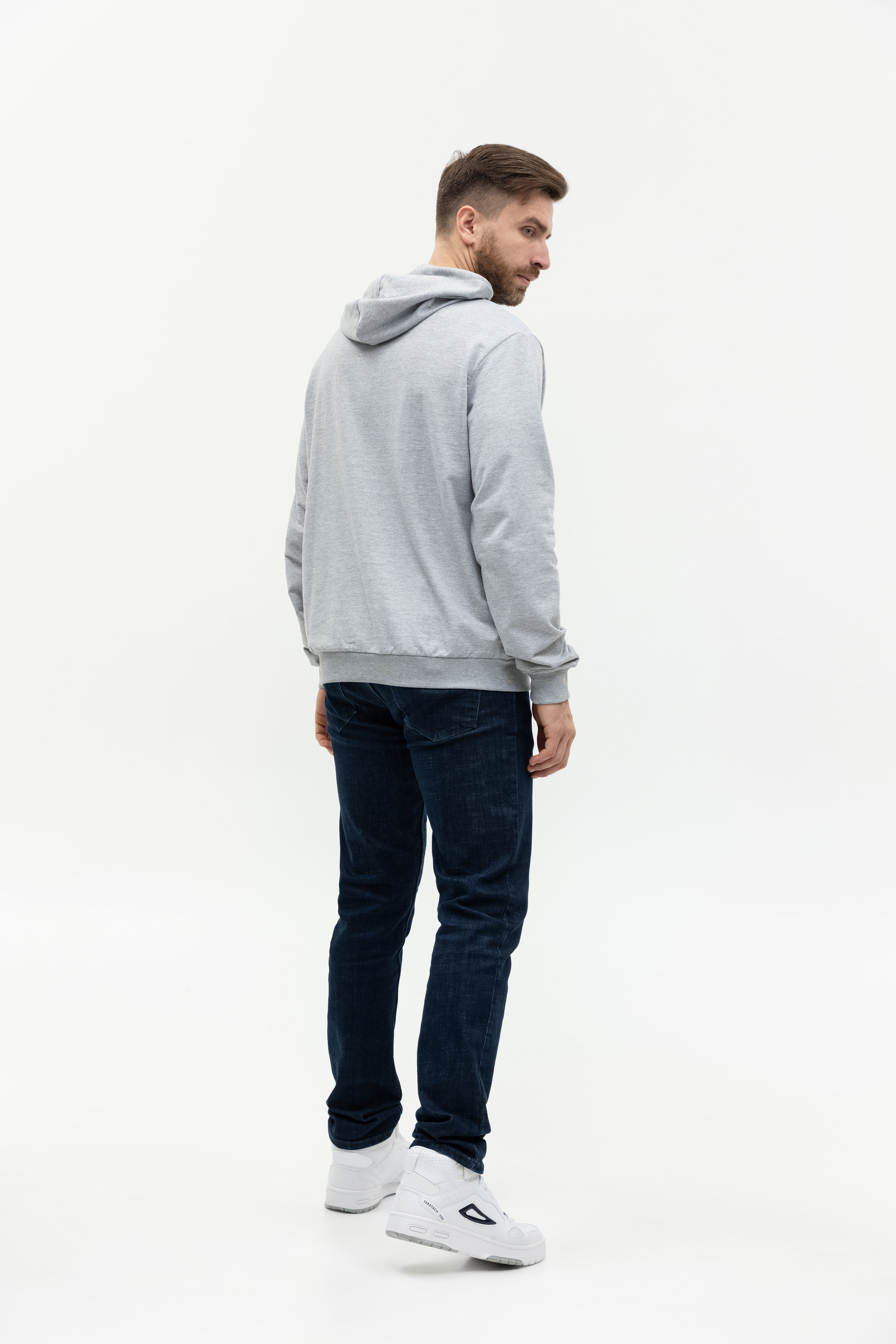 Толстовка без начеса выполнена из мягкого футера (100% хлопок), подклад – кулирная гладь (100% хлопок). Оба материала устойчивы к механическому воздействию и вытяжению, практически не поддаются пилингу.