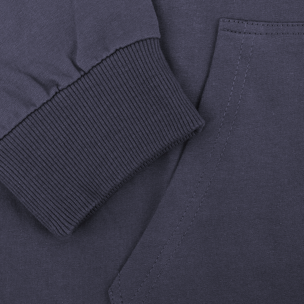 Толстовка oversize-силуэта с глубоким капюшоном, спущенной линией плеча, карманом-кенгуру и застежкой на молнию. Глубина капюшона регулируется шнурком с пластиковым наконечником, а рукав и низ изделия дополнены плотной эластичной резинкой.