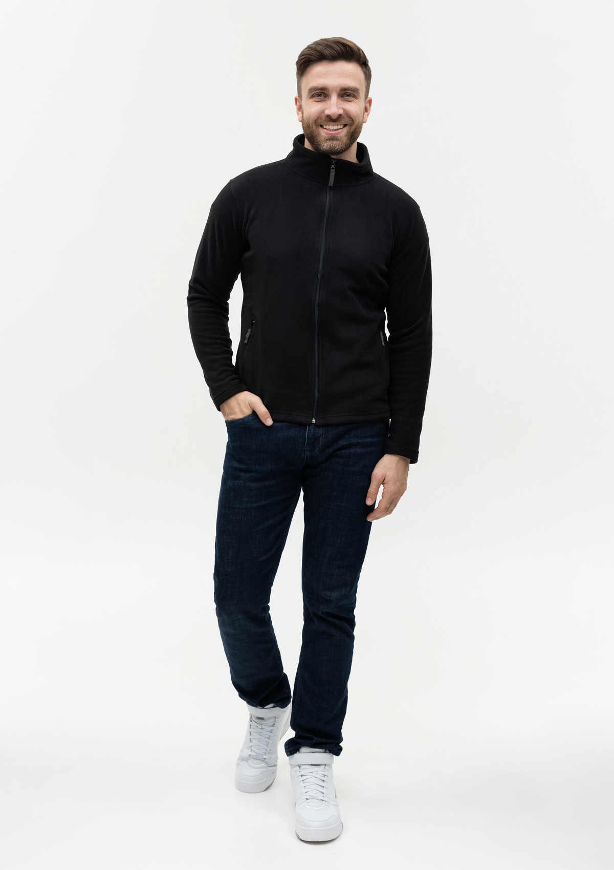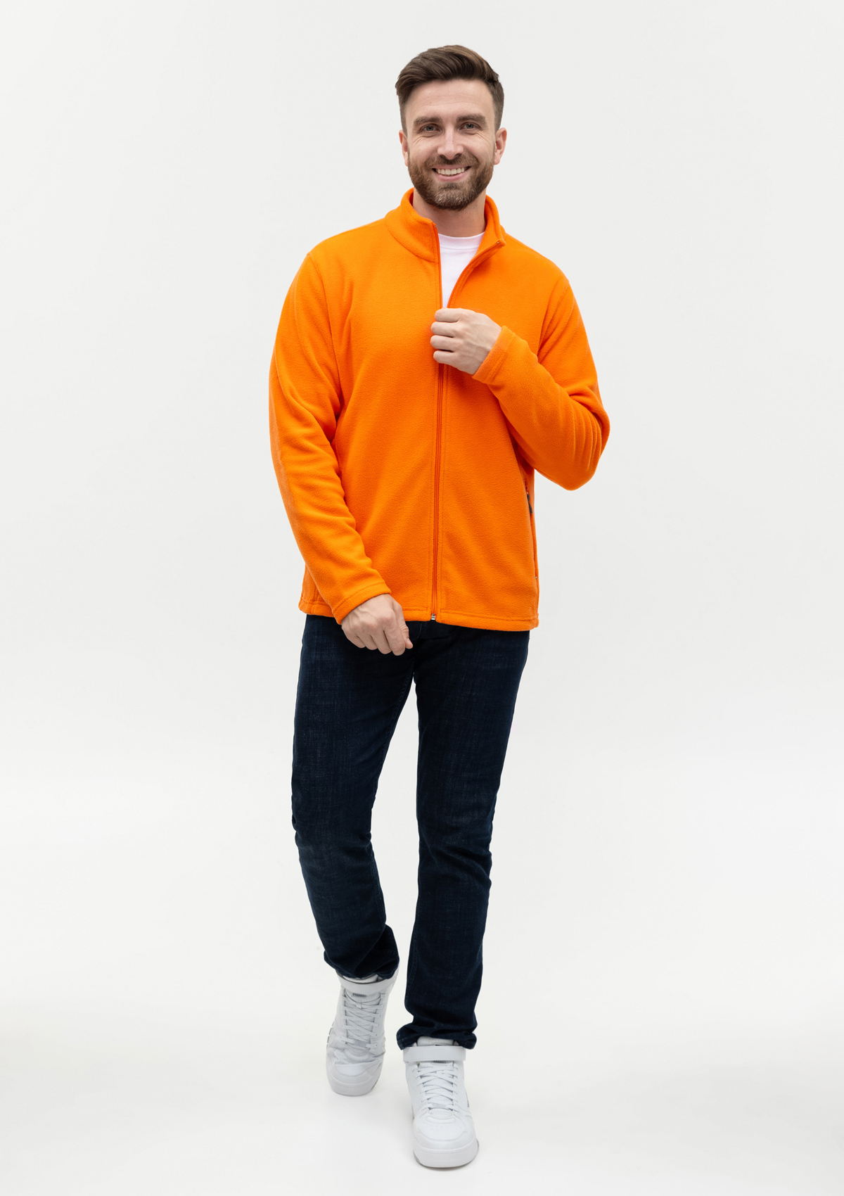 Толстовка выполнена из мягкого микрофлиса плотностью 200гр/м2. Легкий в уходе материал отлично сохраняет тепло, поглощает и отводит влагу.