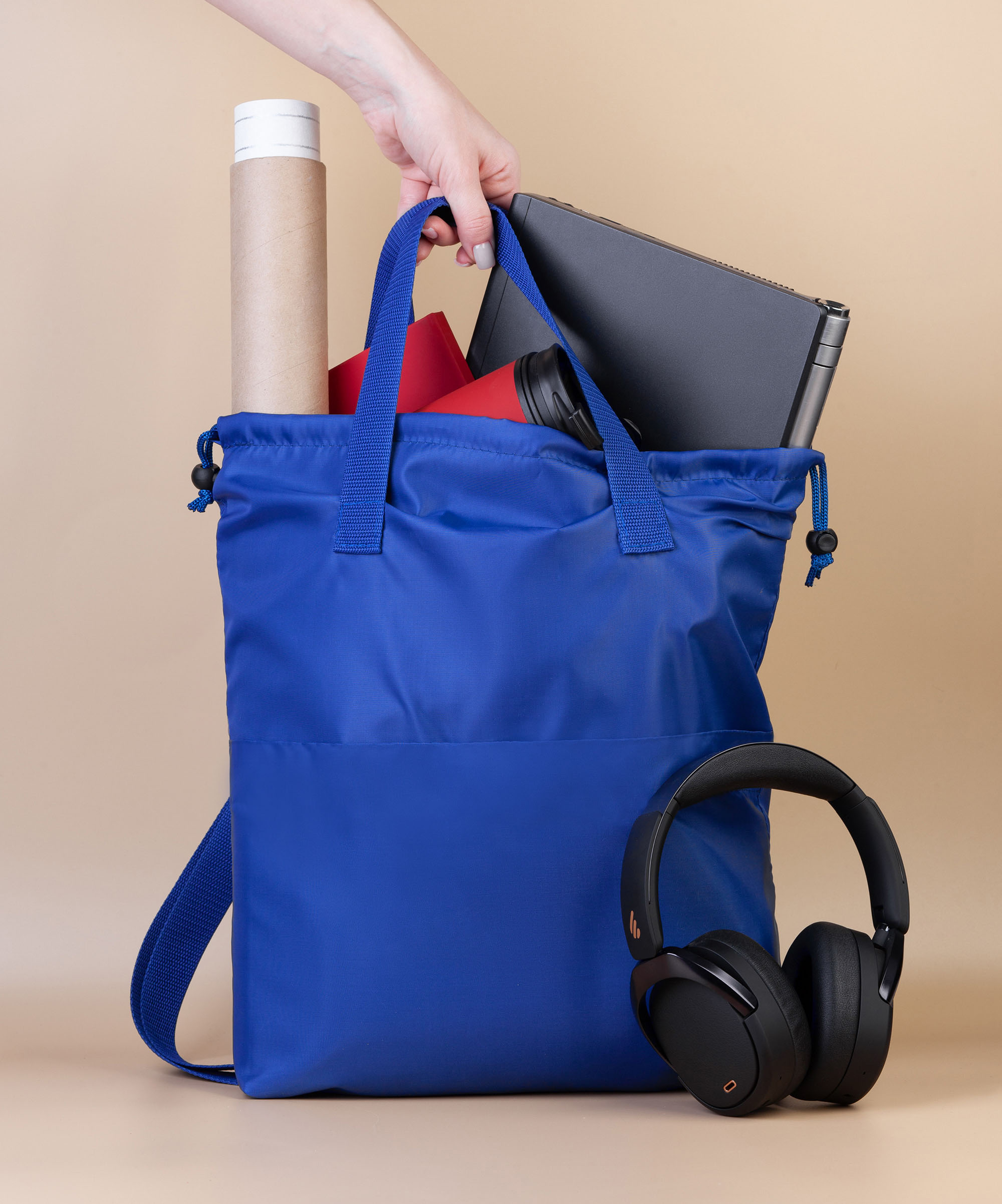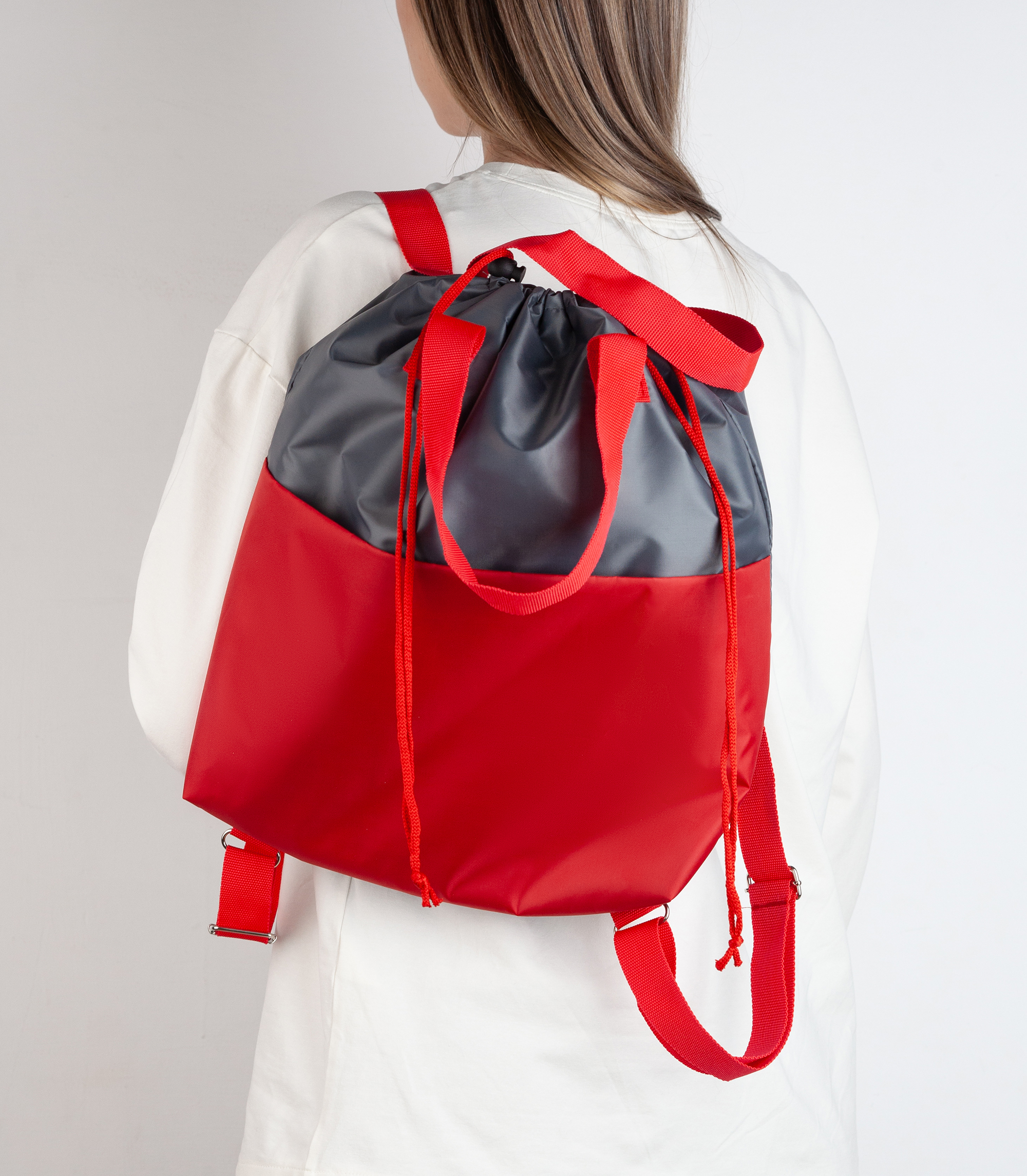 Вместительный передний карман на липучке для быстрого доступа к мелким аксессуарам. Основное отделение на шнурке с аксельбантами (стопперы, фиксаторы) для быстрого закрытия.