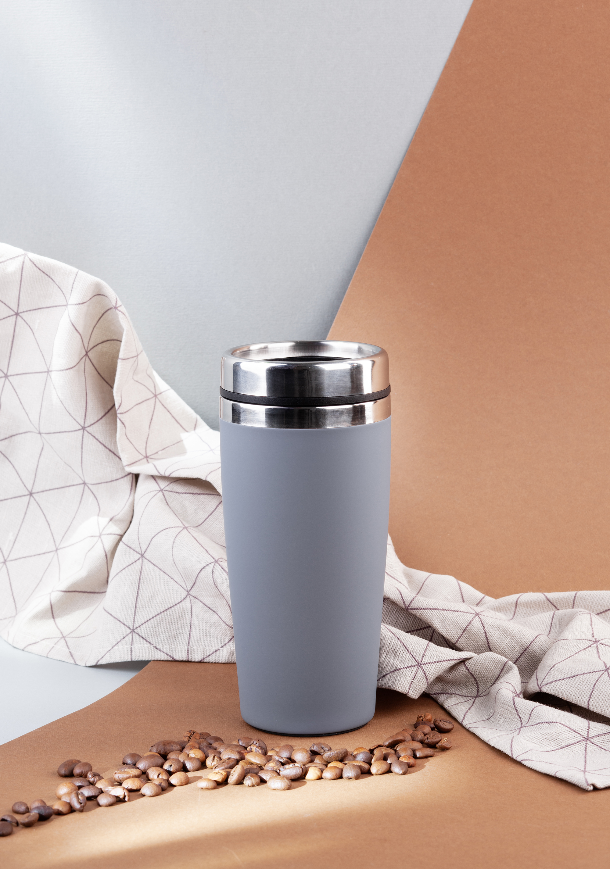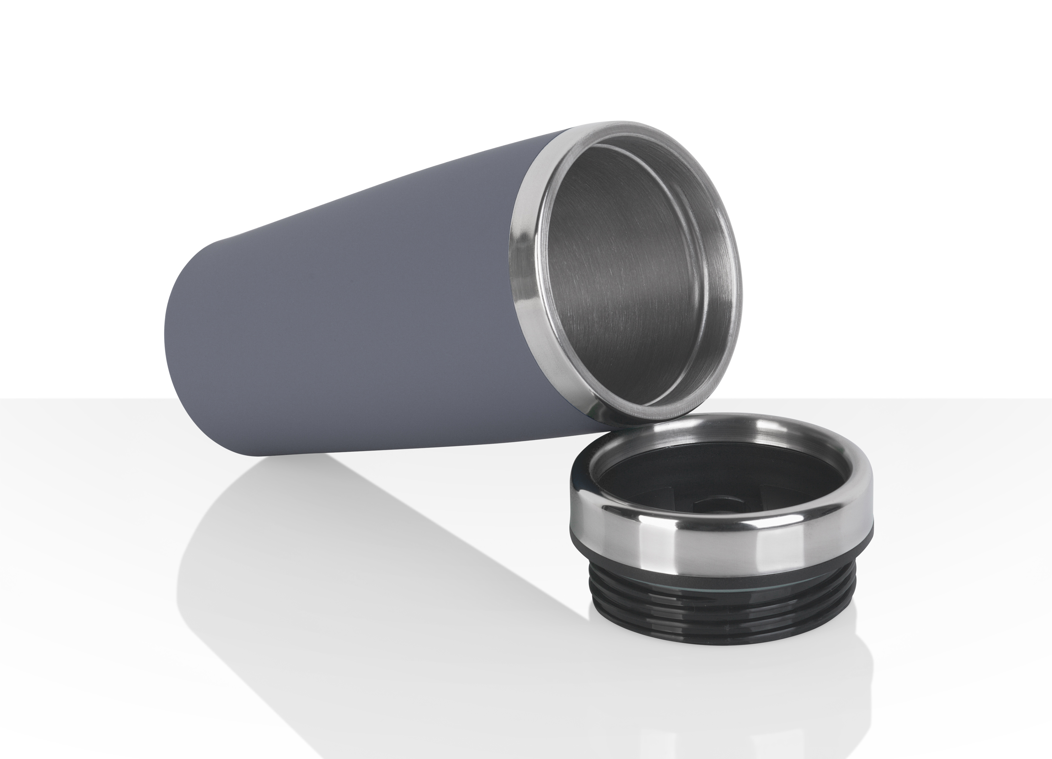 Внешняя стенка термостакана изготовлена из нержавеющей стали с уникальным прорезиненным напылением soft-touch, а внутренняя стенка выполнена из высококачественной пищевой, нержавеющей стали. Корпус изделия персонализируется по окружности встык. У термостакана отвинчивающаяся крышка.