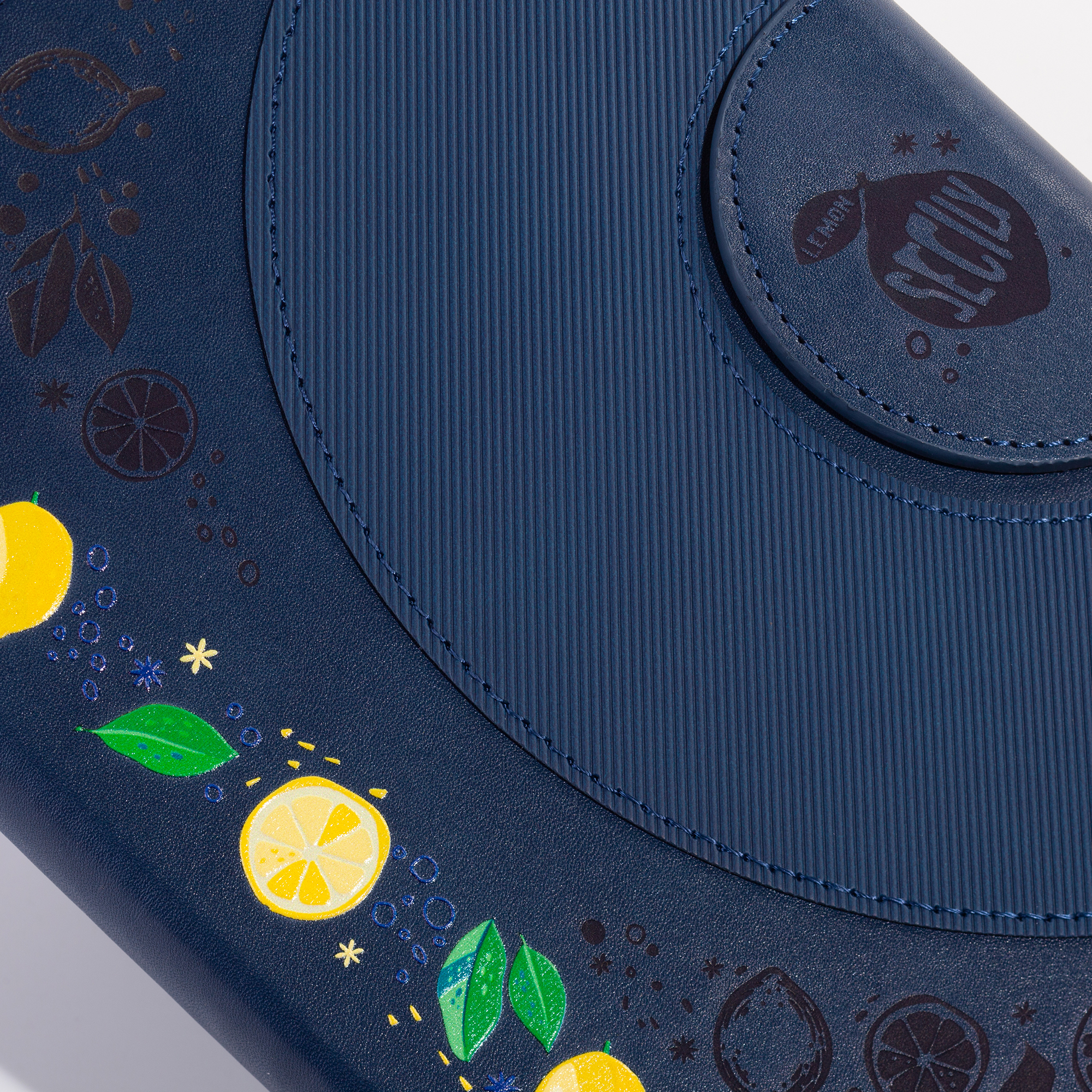 Новинка в коллекции Wownote с оригинальной сшивкой под магнитный хлястик. Основной материал гладкий мелкозернистый с глянцем, имитирует фактуру натуральной кожи. Матовая вставка с диагональным направлением рисунка в тон основного материала. Большой магнитный хлястик, который можно использовать под нанесение.