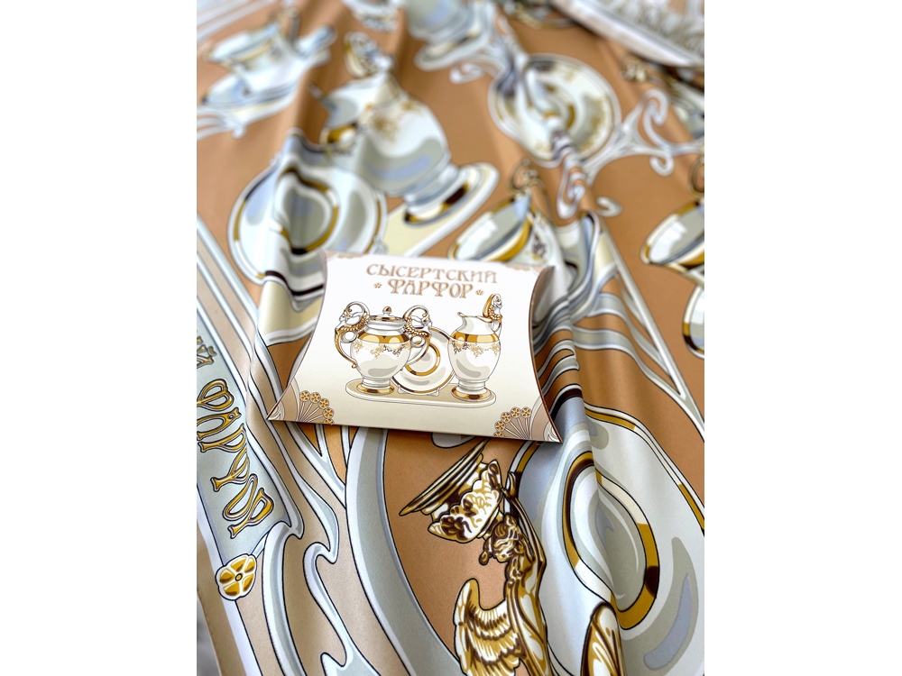 Платок Сысертский фарфор от дизайнера Нины Ручкиной посвящается уральскому народному промыслу, известному с 19 века.