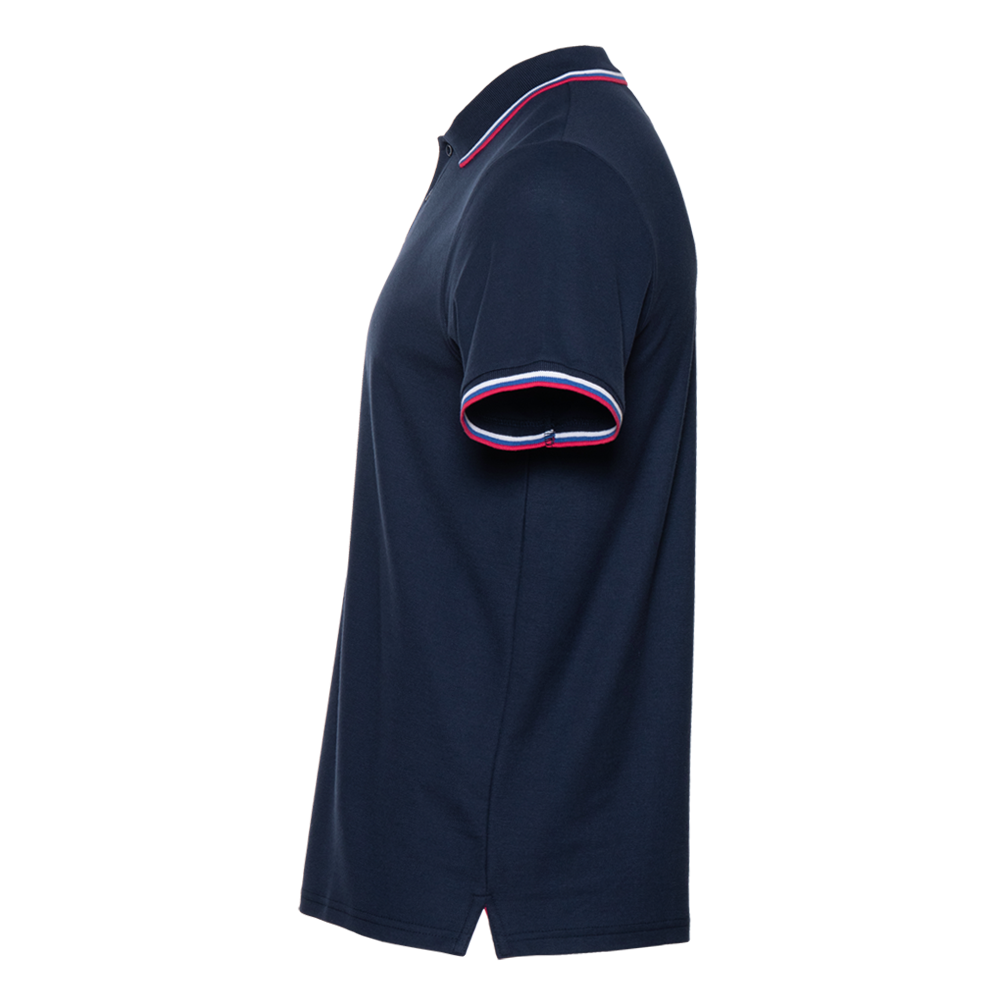 Поло выполнено из плотного и приятного к телу трикотажного пике (80% хлопок 20% полиэстер). Эластична ткань хорошо пропускает воздух и впитывает влагу. Благодаря добавлению синтетического волокна изделие практически не мнется.