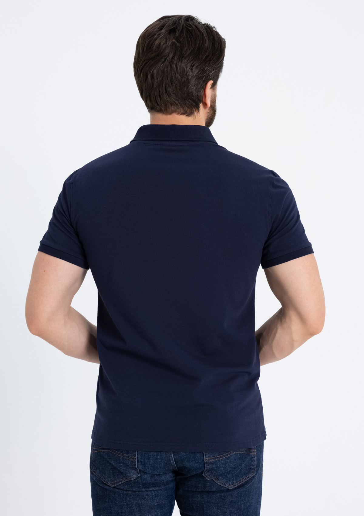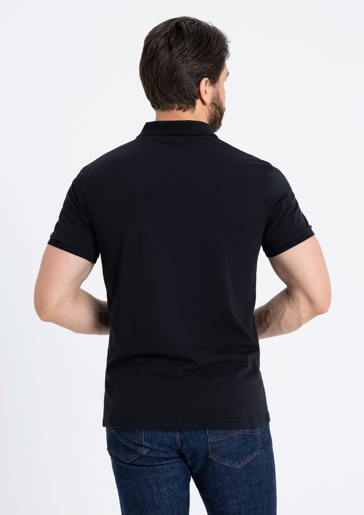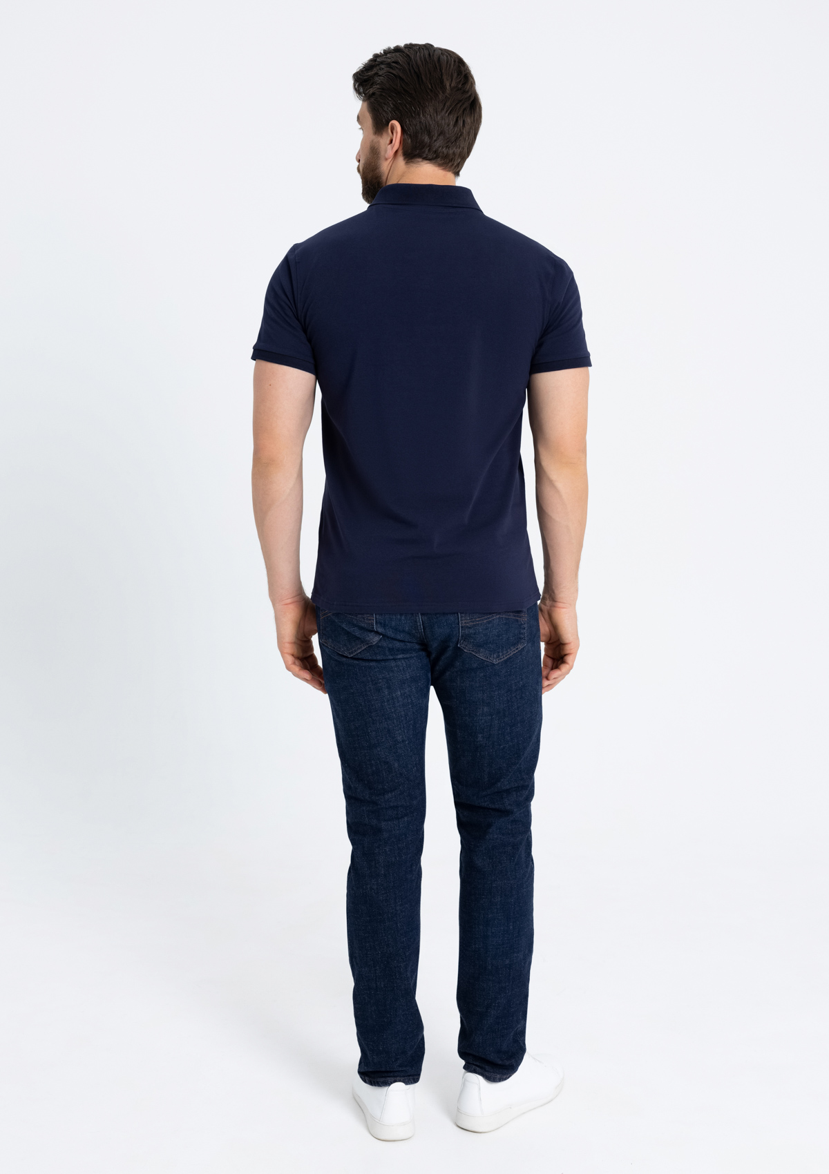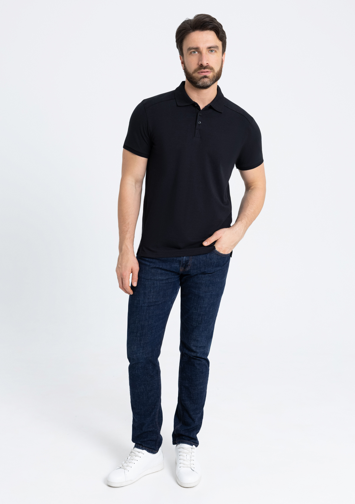 Размер мужской рубашки поло: XL/52. Параметры модели: рост 190 см.; обхват груди 108 см.; обхват талии 87 см.; обхват бедер 104 см.