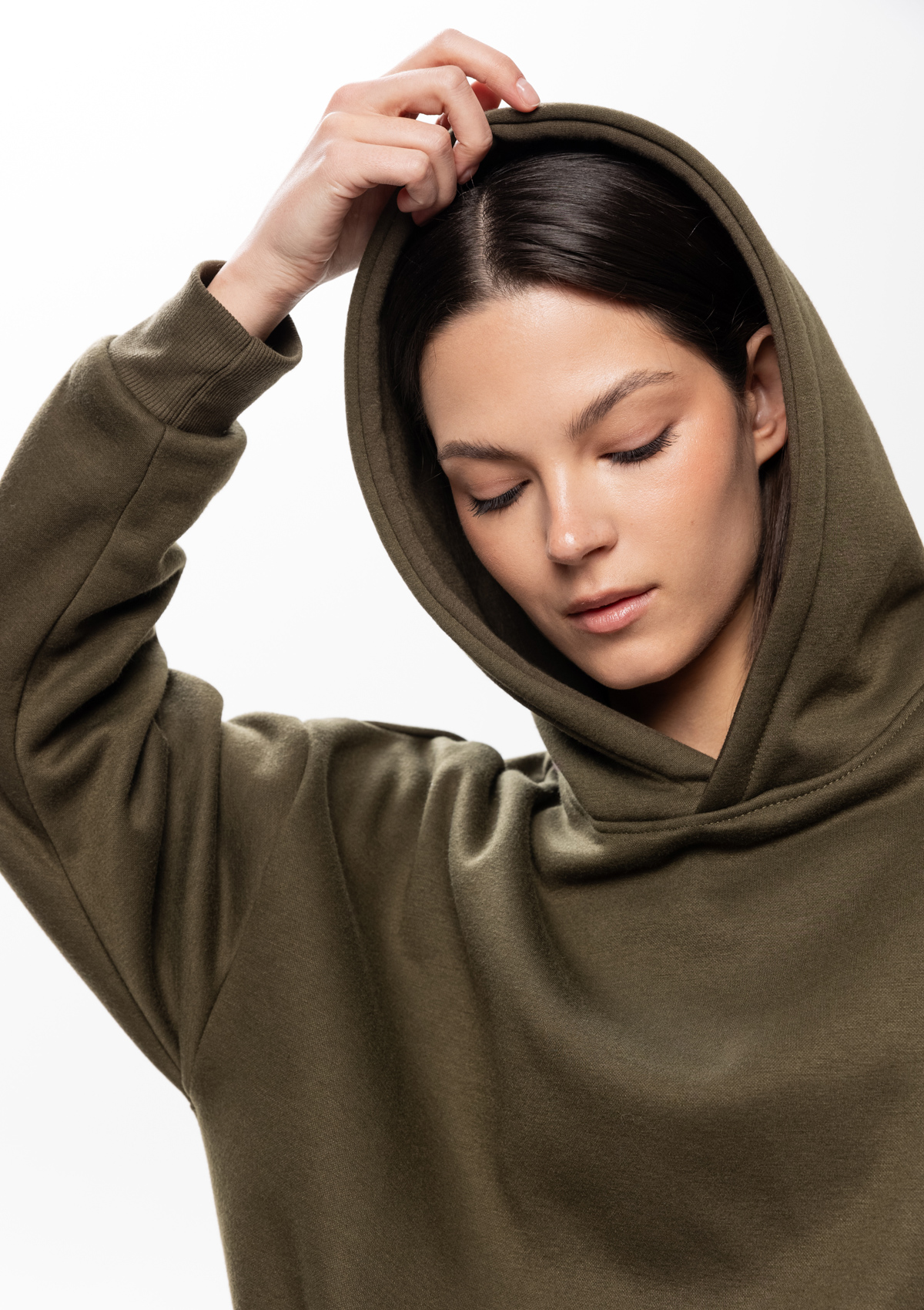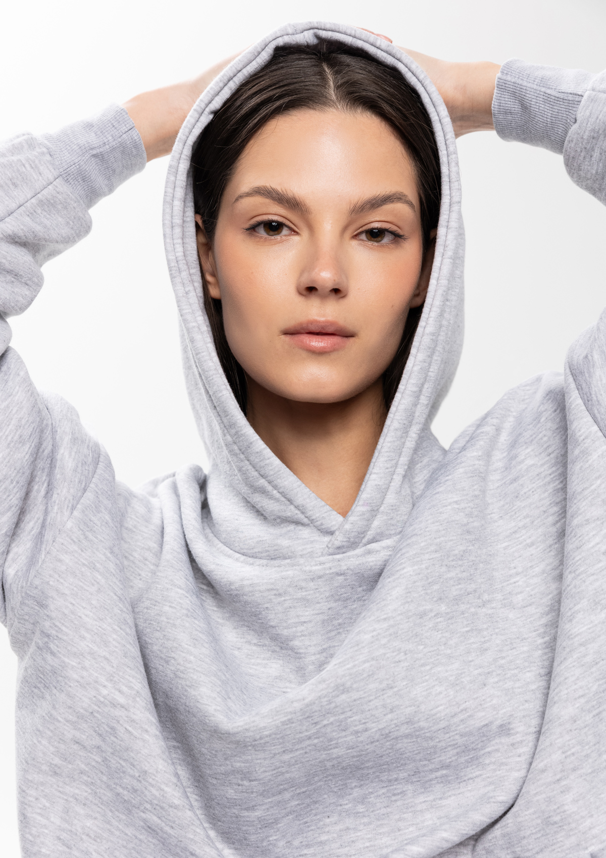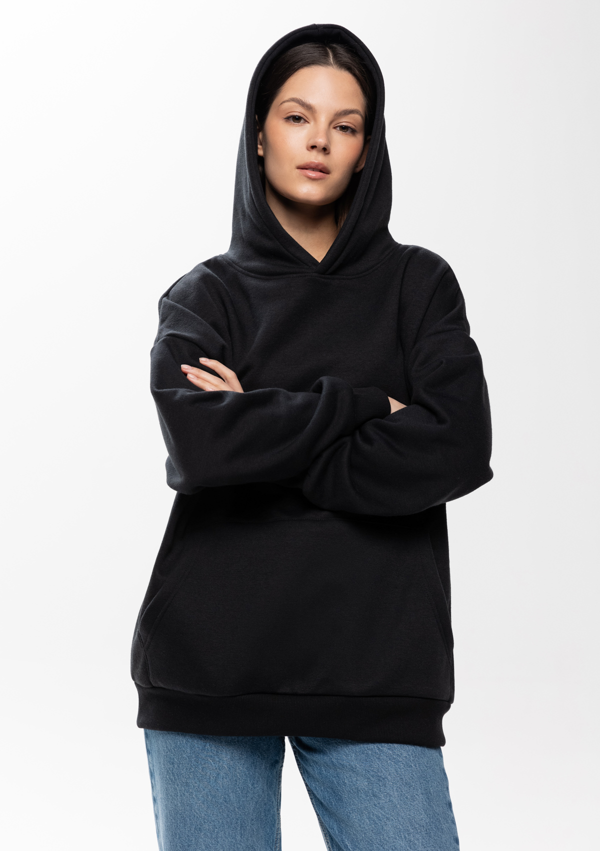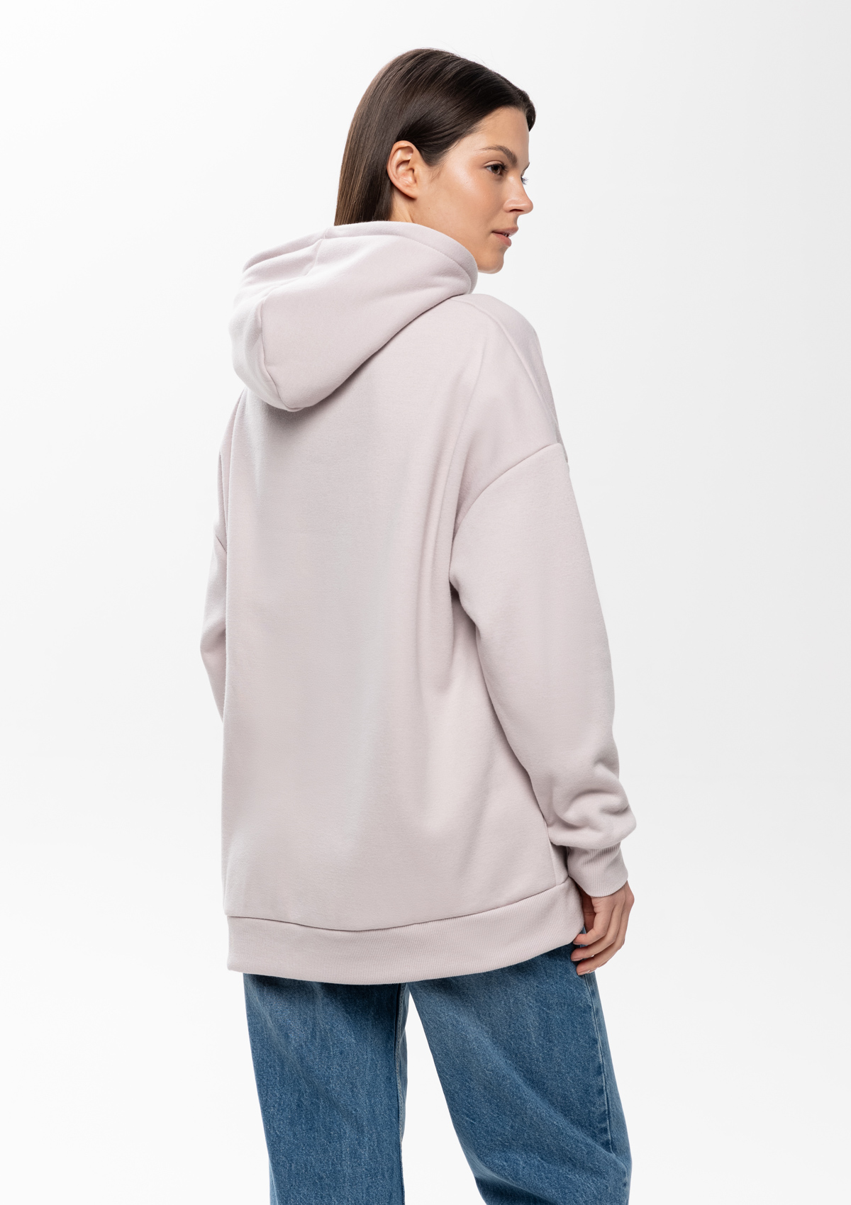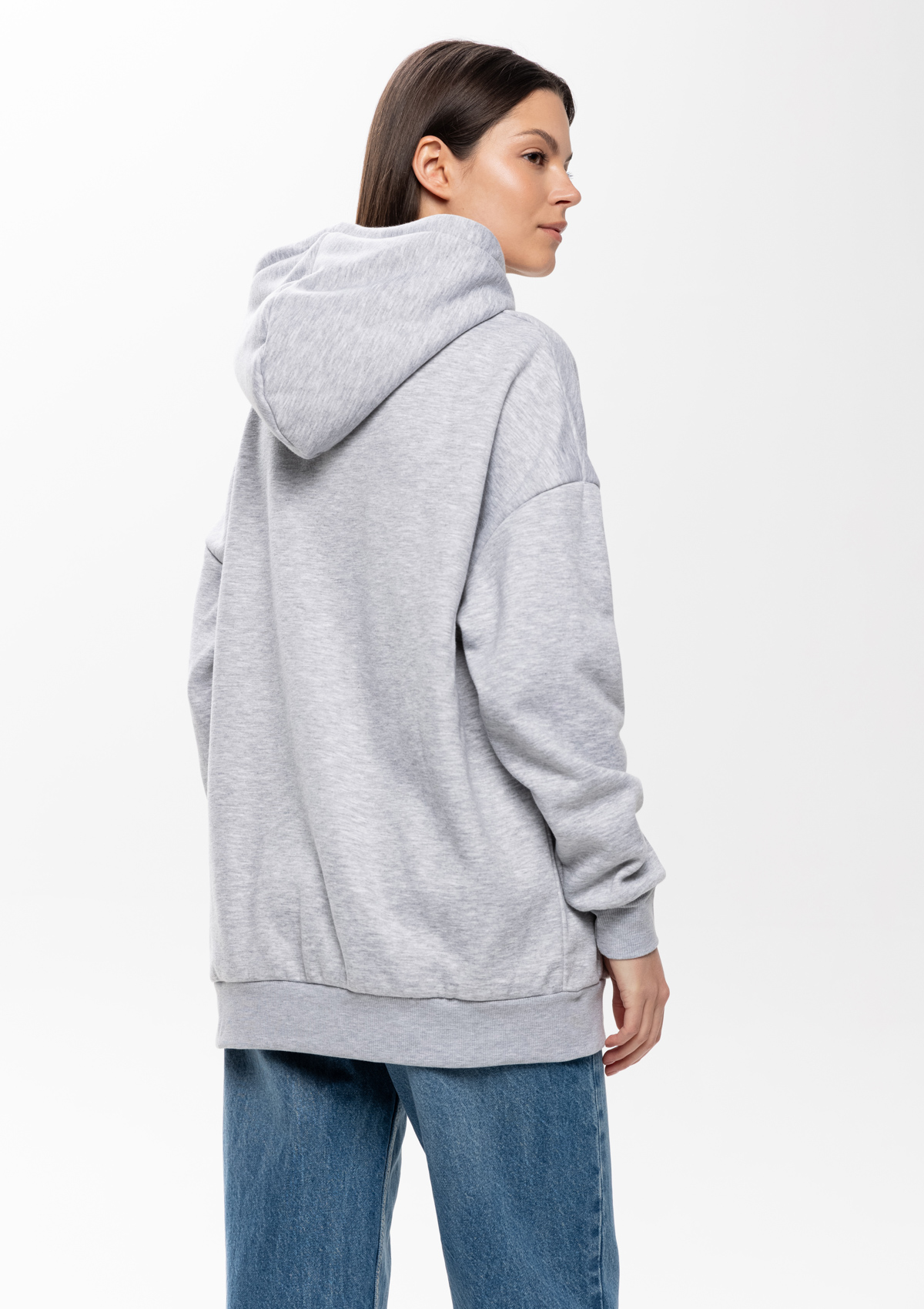 Размер женского худи: XS/44. Параметры модели: рост 173 см.; обхват груди 80 см.; обхват талии 58 см.; обхват бедер 89 см.