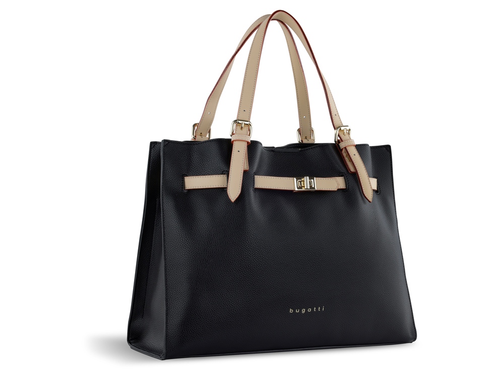 Сумка наплечная женская BUGATTI Ella, черная, полиуретан, 37,5х13,5х28 см